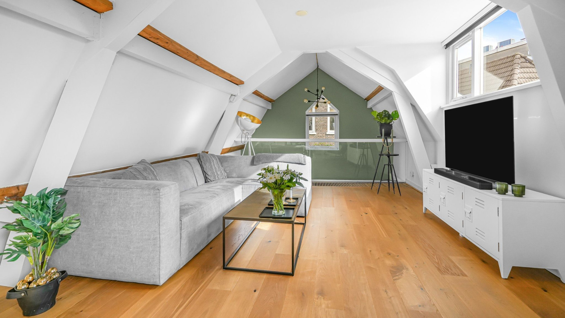Op de eerste verdieping zorgt de combinatie van originele spanten, houten vloerdelen en een entresol voor een sfeervolle, loftachtige uitstraling. De moderne leefkeuken beschikt over twee aanrechten – ideaal voor wie graag kookt én entertaint. Via de keuken bereik je het zonnige terras op het zuiden, perfect voor een borrel in privacy.