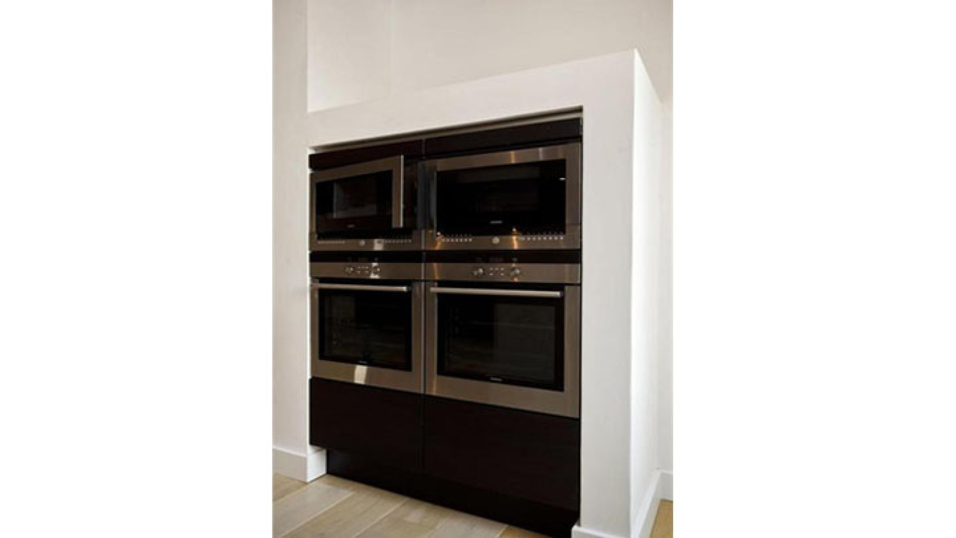 De keuken is een lust voor het oog. Niet alleen beschikt het over een kookeiland, maar ook over een zogenaamd dinereiland, Uiteraard ontbreekt de benodigde inbouw apparatuur niet.