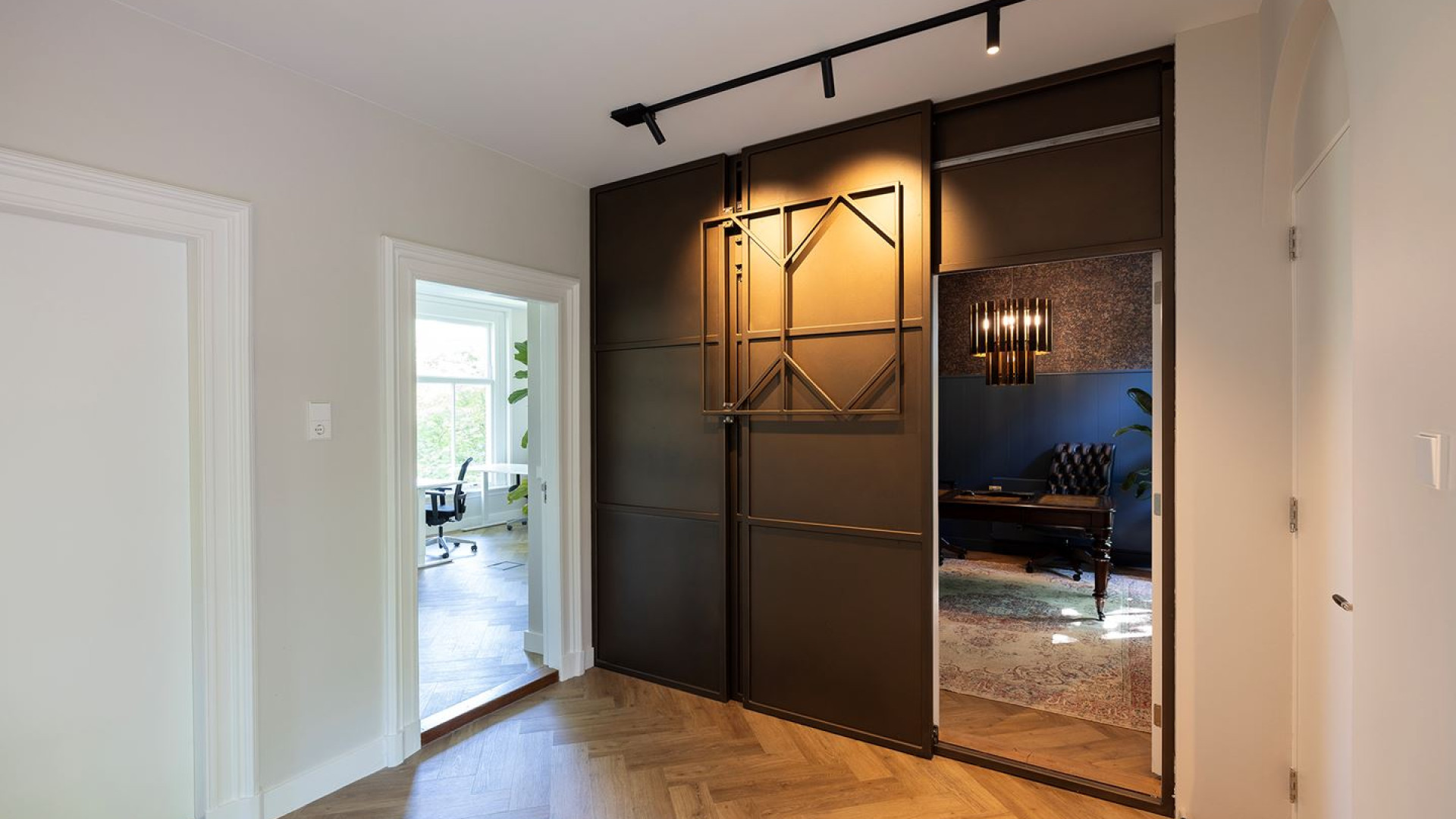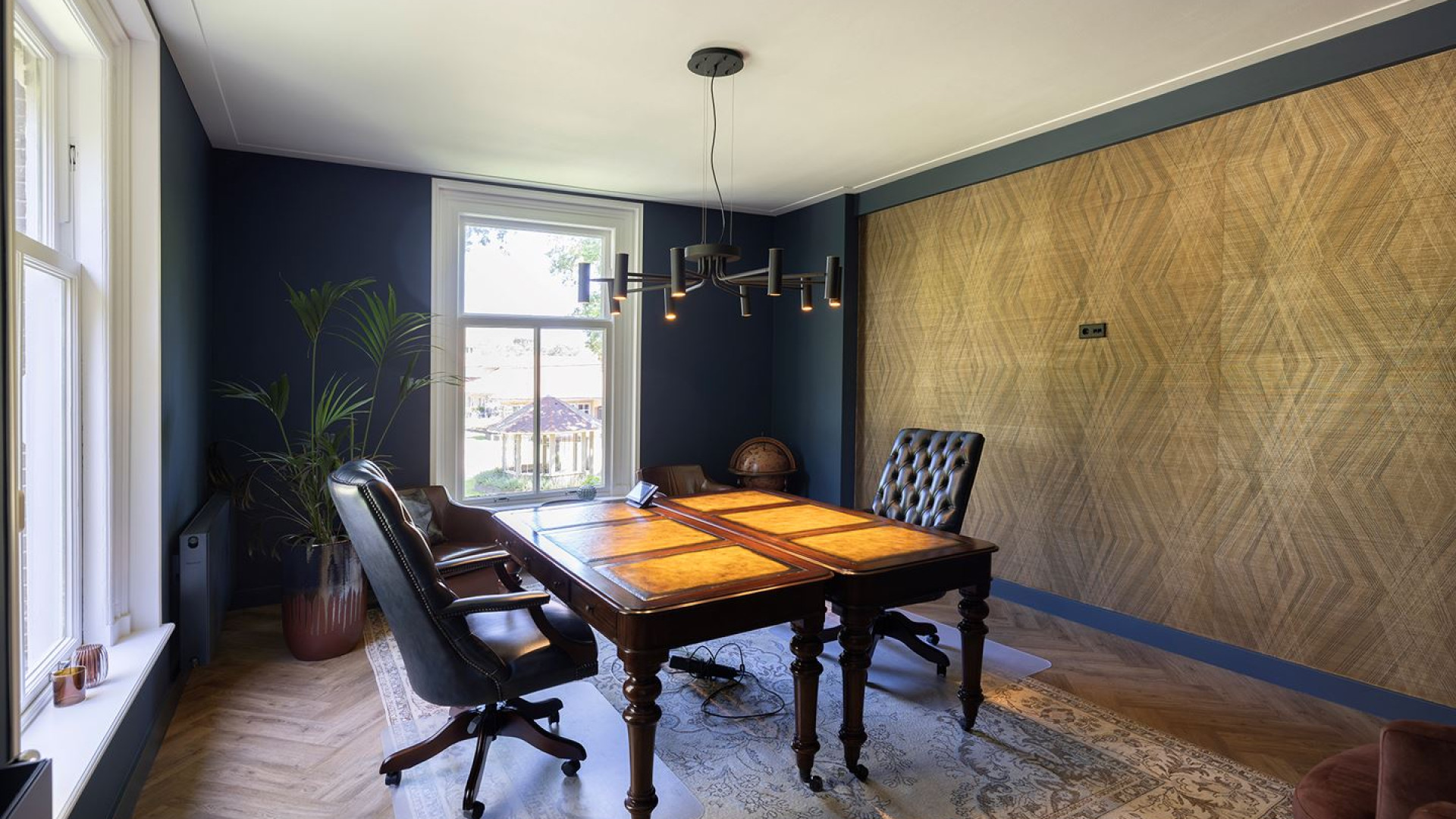 De totale woonoppervlakte bedraagt 303 vierkante meter en in totaal zijn er 11 kamers verdeeld over drie woonlagen plus een kelder. Er bevinden zich op de eerste verdieping een aantal prachtige werkruimtes en een keuken