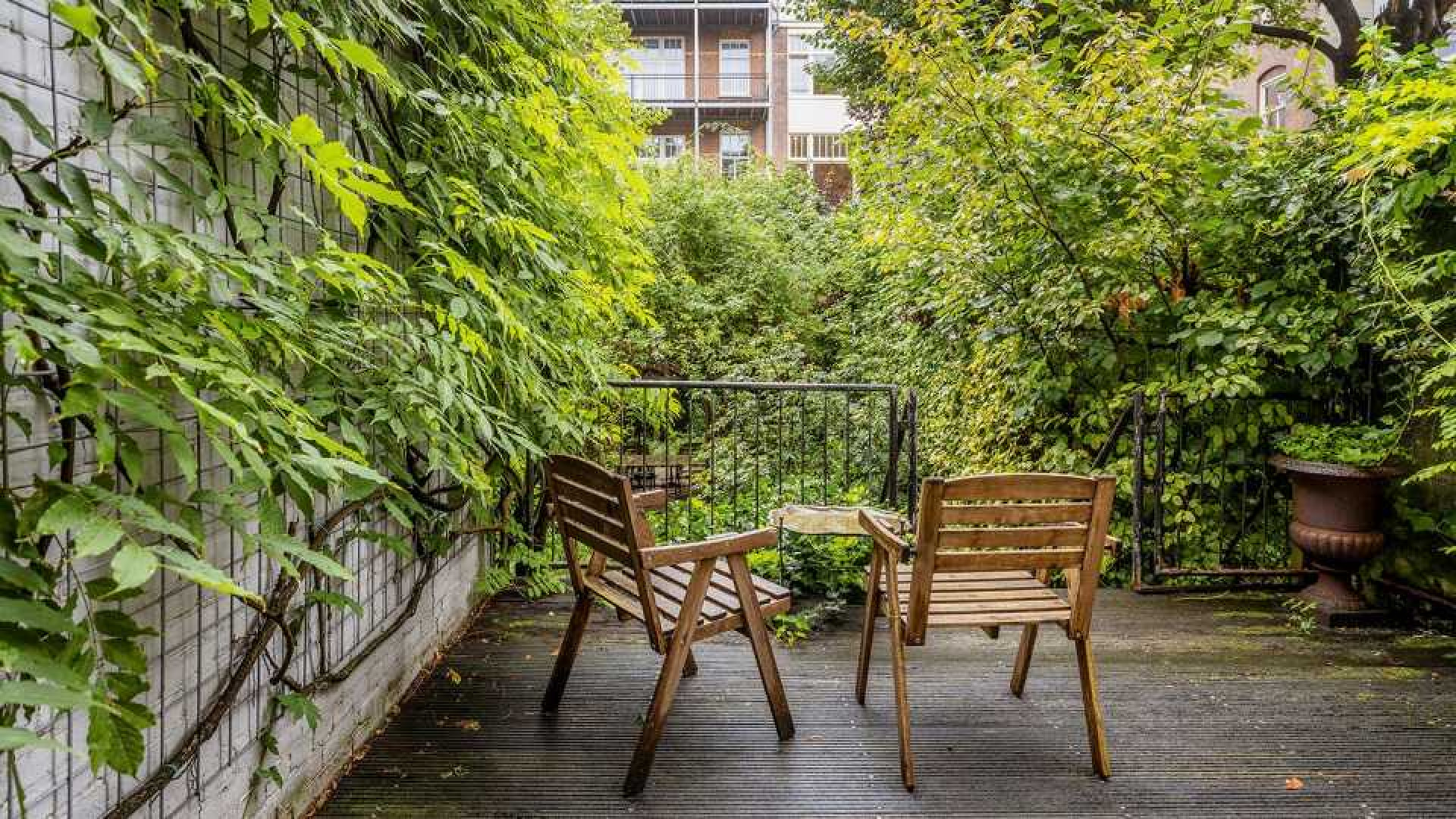 Alles verdeelt over vier woonlagen plus een kelder. De keuken is eenvoudig, dus koken is blijkbaar niet zijn hobby. Van de zon genieten kan in de achtertuin van 90 vierkante meter, gelegen op het zuidoosten.
