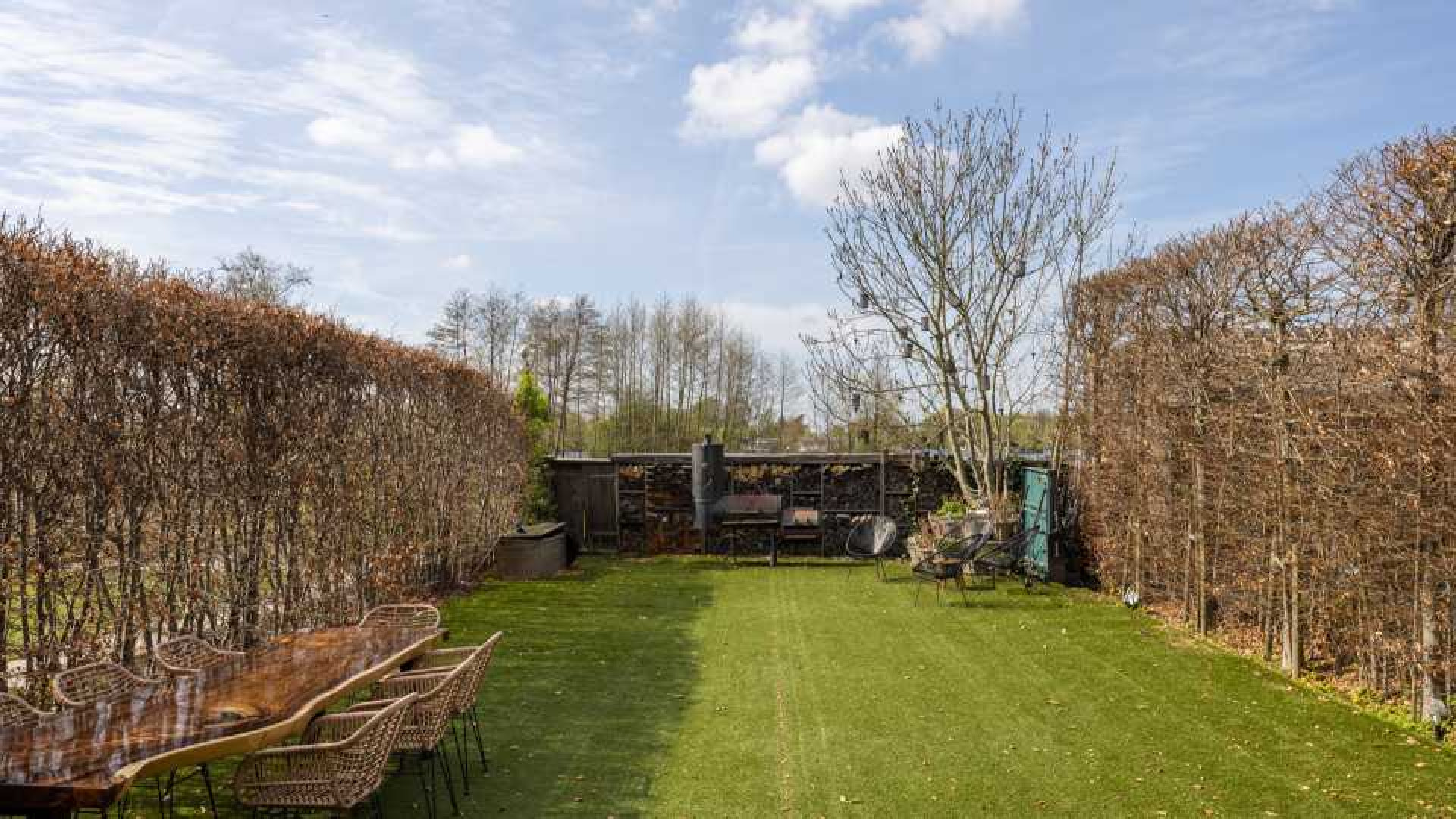 Dit alles is verdeeld over drie woonlagen plus een kelder. De achtertuin is riant en ligt op het westen en de auto kan worden geparkeerd op eigen terrein.